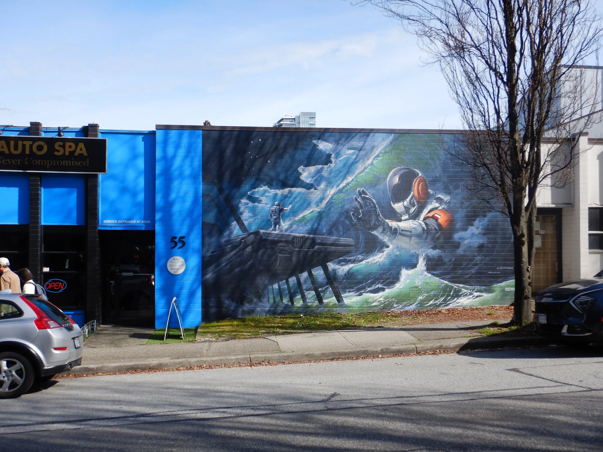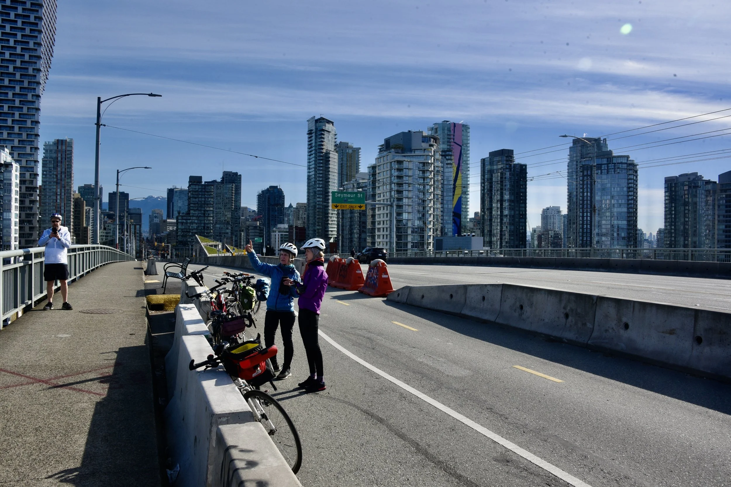 The ride out from Waterfront Station was punctuated by stops on Granville Street Bridge to check out the famous benches and the view, as well as a rocket ship, a sci-fi mural and a mythical cocktail bar. So really this was an infrastructure and public art tour but with the amazing bonus of incredible blossoms, the Kwanzan Flowering Cherry trees are at their peak right now. We were well rewarded.