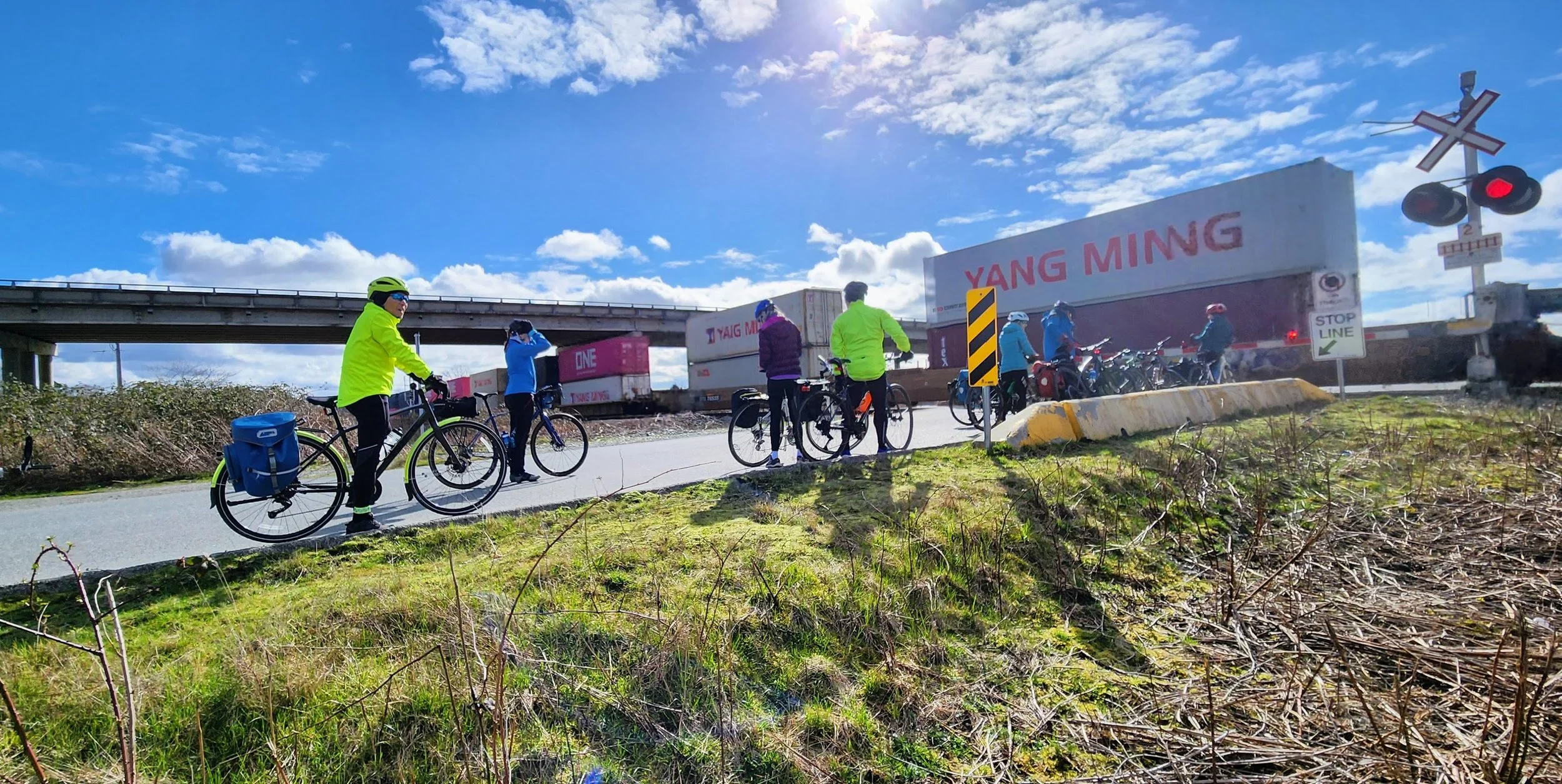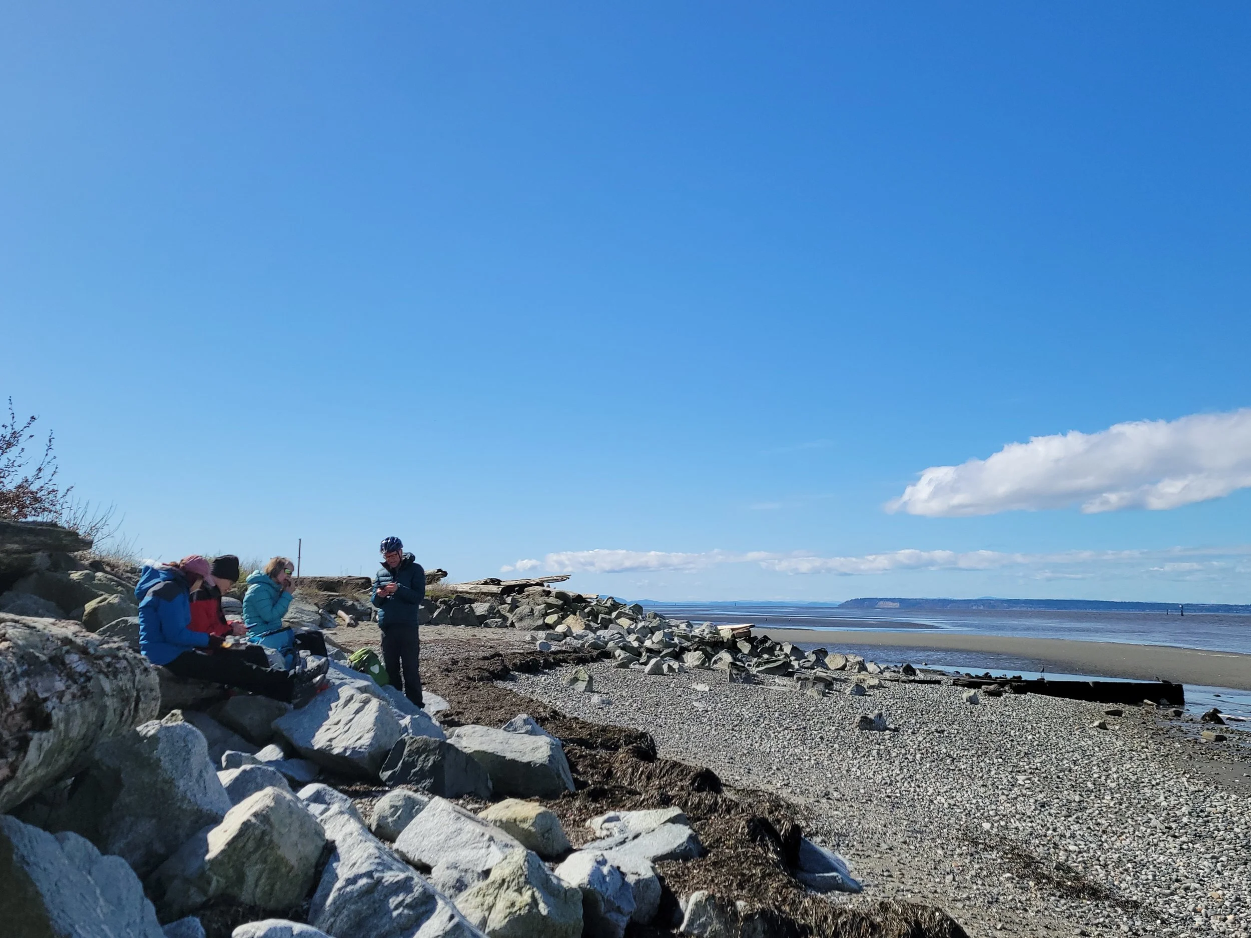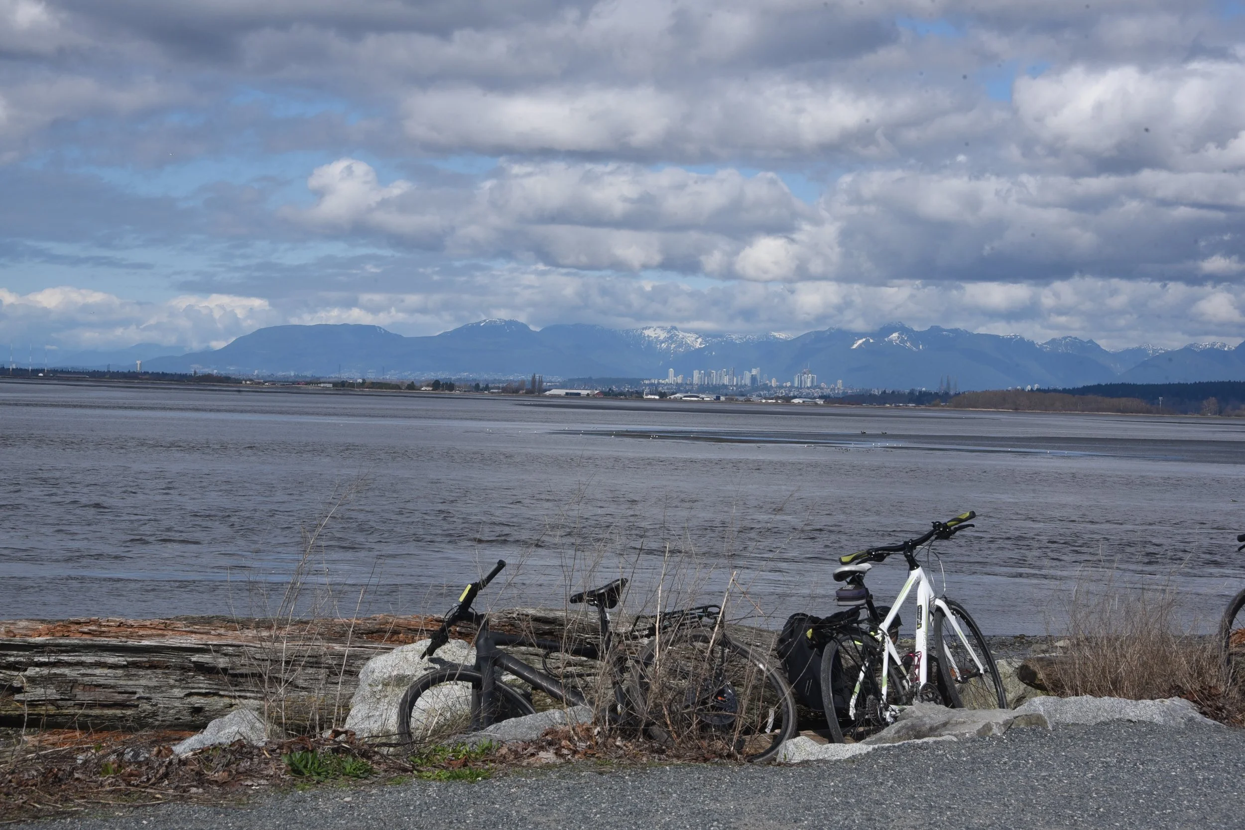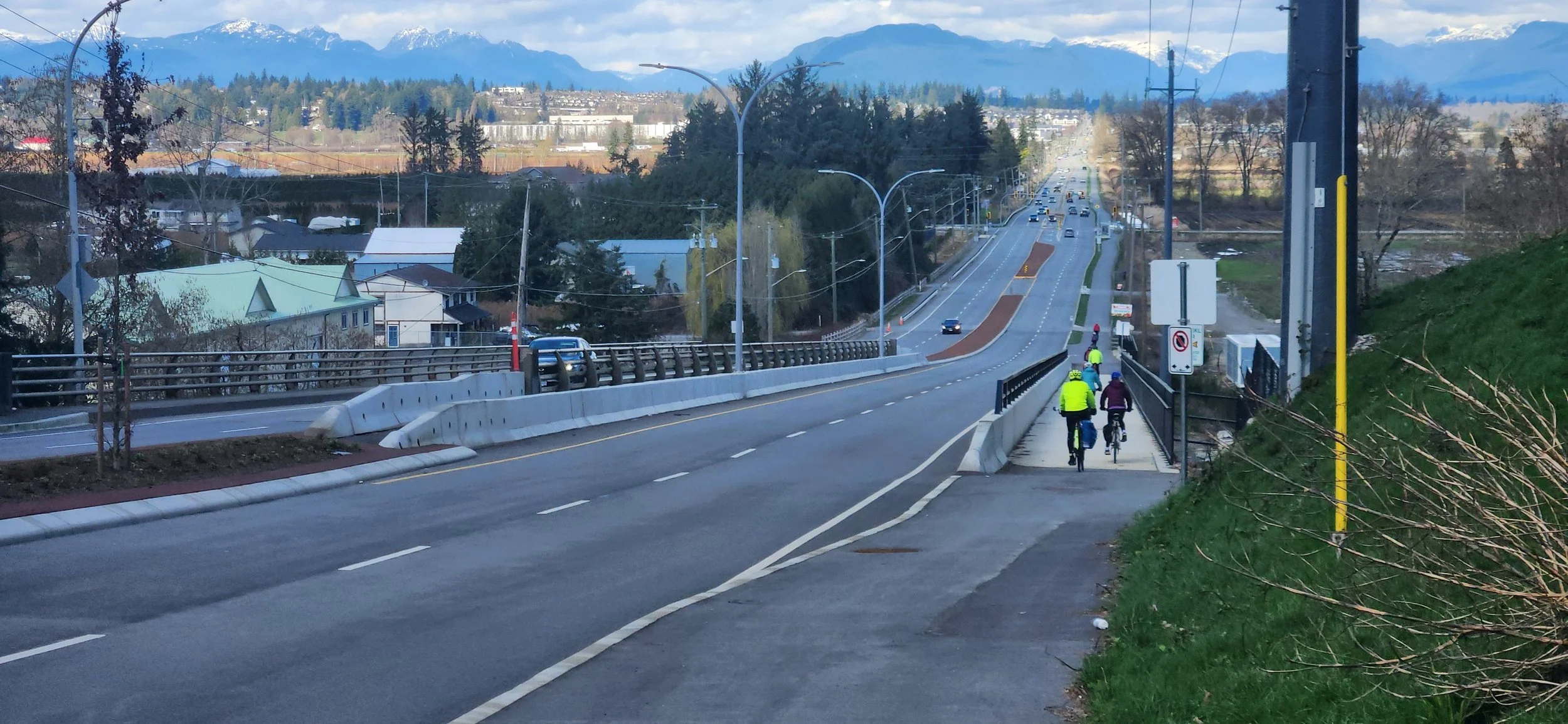 Even a start time of 0900 at King George meant that those leaving early were only just setting out in daylight with sunrise at 0713. However we did have a whole day ahead of us with twelve hours of daylight, the joy of the Equinox. High point of the transit journey was to see the progress at the stal̕əw̓asəm Bridge, the approach ramps are taking shape and now the line of the bike/pedestrian approach is clear. Roll on summer for that to open for cyclists and pedestrians, it’ll open up a lot more territory for our bike rides.