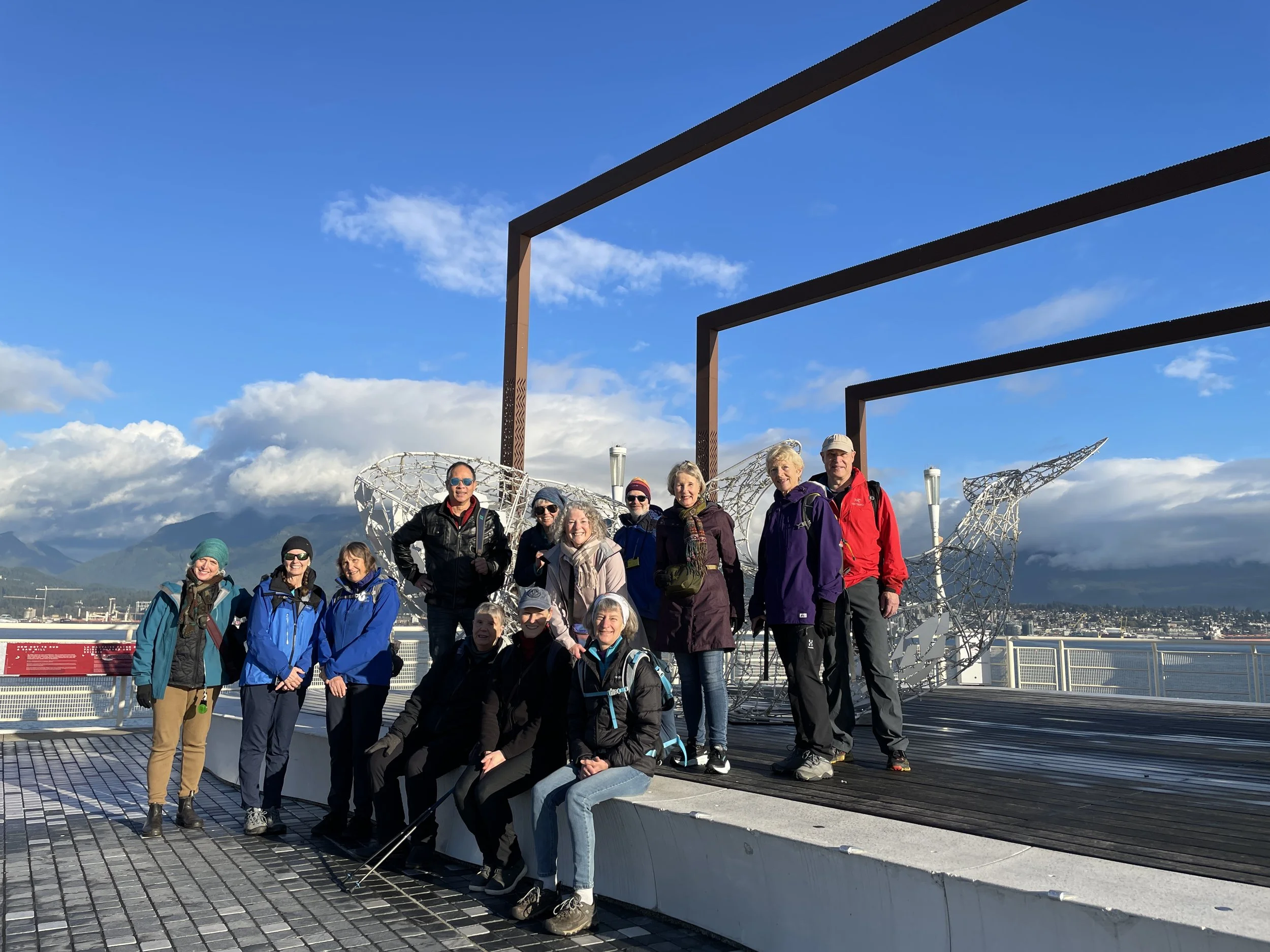 The morning dawned with distinctly better weather than anticipated when 14 of us gathered for the now-annual Noel Fleurs de Villes downtown amble. This year's theme was the Twelve days of Christmas and the displays were as innovative and eye-catching as always. Our group included some new members, nearly members and returning members so it was lovely to wander and chat, catch up and get to know each other better. Our route meandered round the northern end of the Fleurs de Ville displays, along the Canada Place promenade (in a failed attempt to view the Woodward window which were absent this year due to construction) to see the Chris-moose... which turned out to be a Christmas whale. Note to self - maybe a bit more pre-planning required next year!