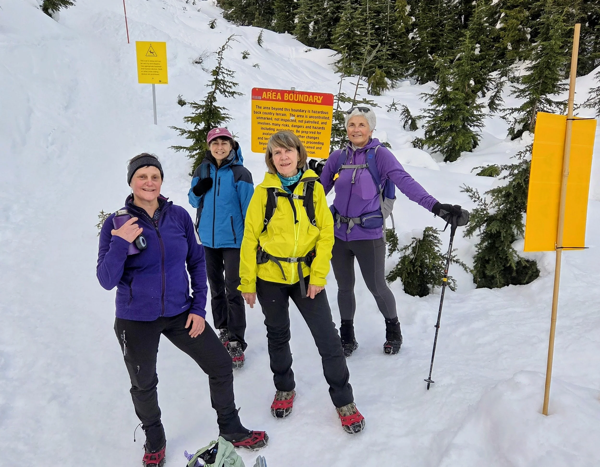 Eleven members and one guest joined up at 4:30 pm for this sunset hike. It was a familiar trail for most of us; not too long, but with steep pitches. Everyone opted for spikes, which worked well. We took our time on the way up, stopping to admire and photograph the beautiful views of the sunset and moon and the city lights below us. We caught the last of the sunset sky at the top as we ate our snacks. Headlamps helped on the way down but the moon was bright enough to cast shadows and the city shimmered below us. As always, there was lots of laughter and good conversations, whichcontinued when 8 of us finished off the evening at Queens Cross Pub.