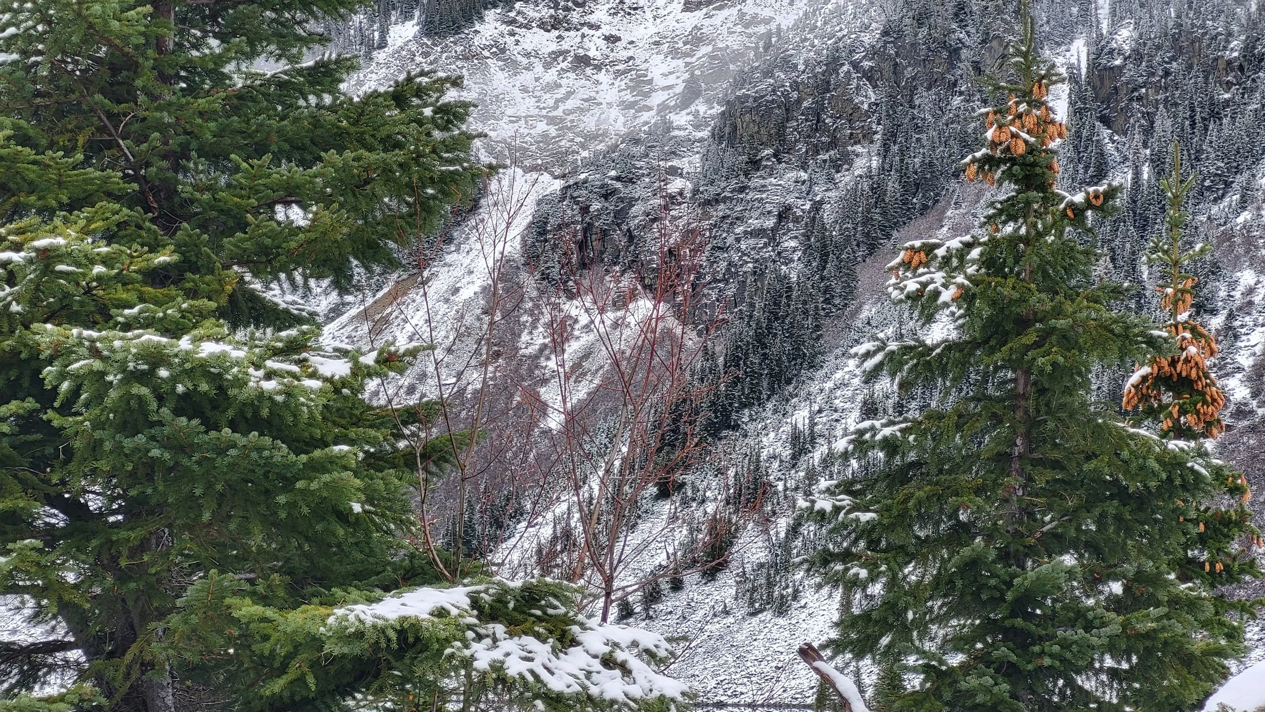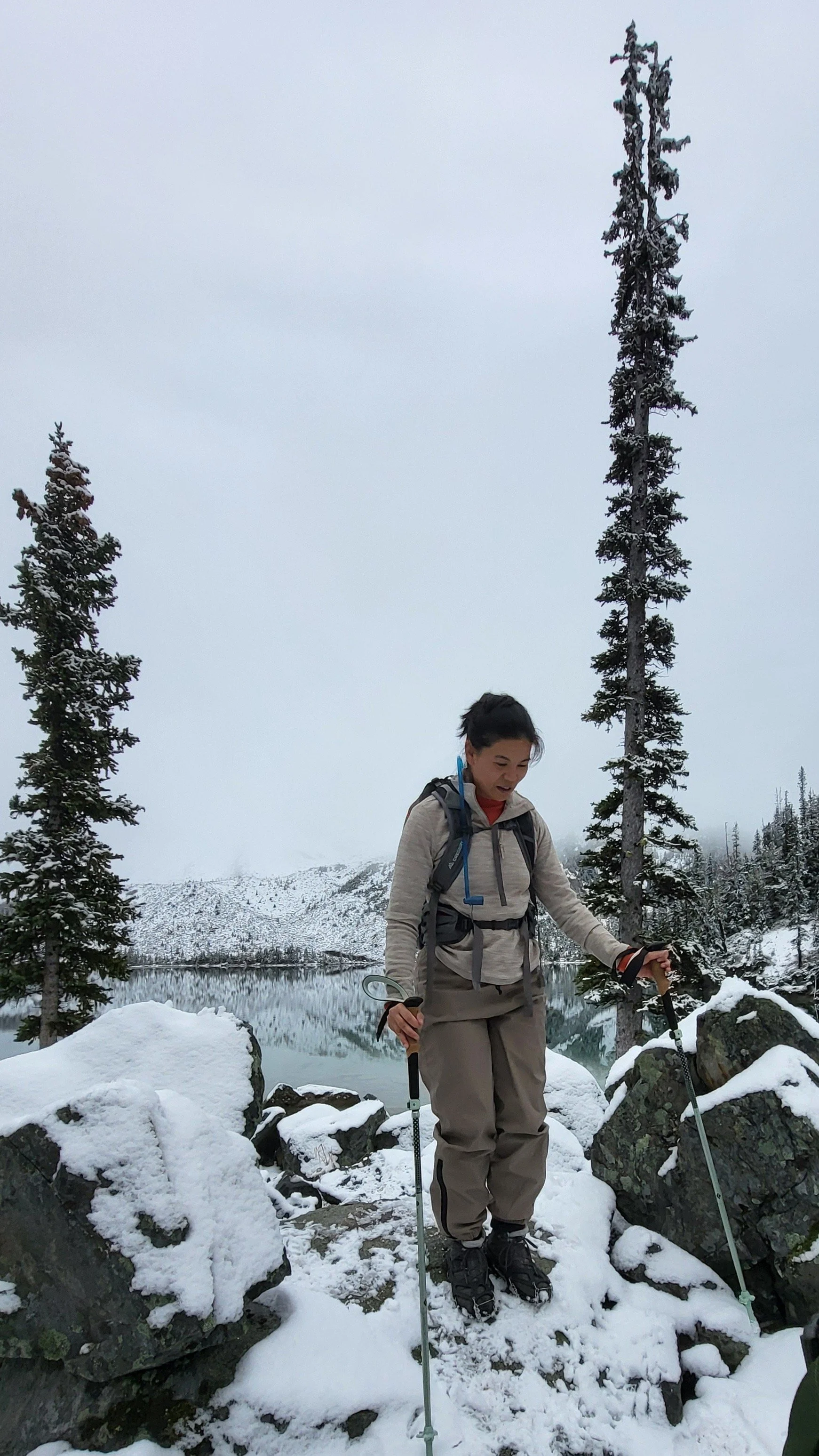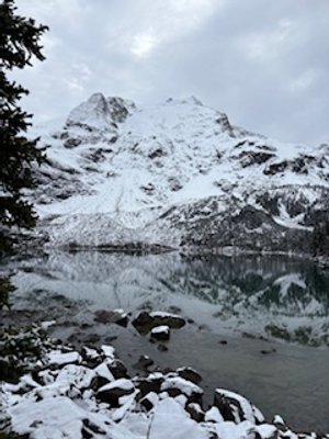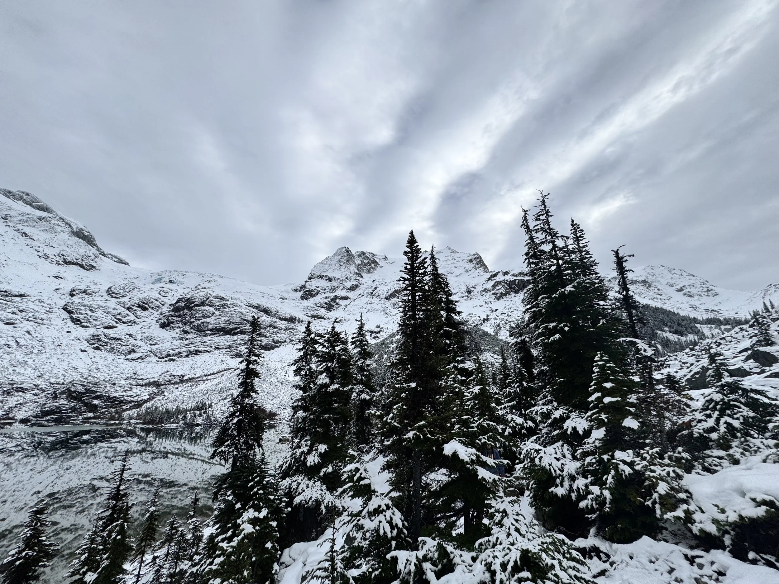 Five members & two lovely guests headed out at 7ish to spike Joffre Lakes trail on Saturday, November 15th. Different weather apps forecasted all types of temperatures & conditions.