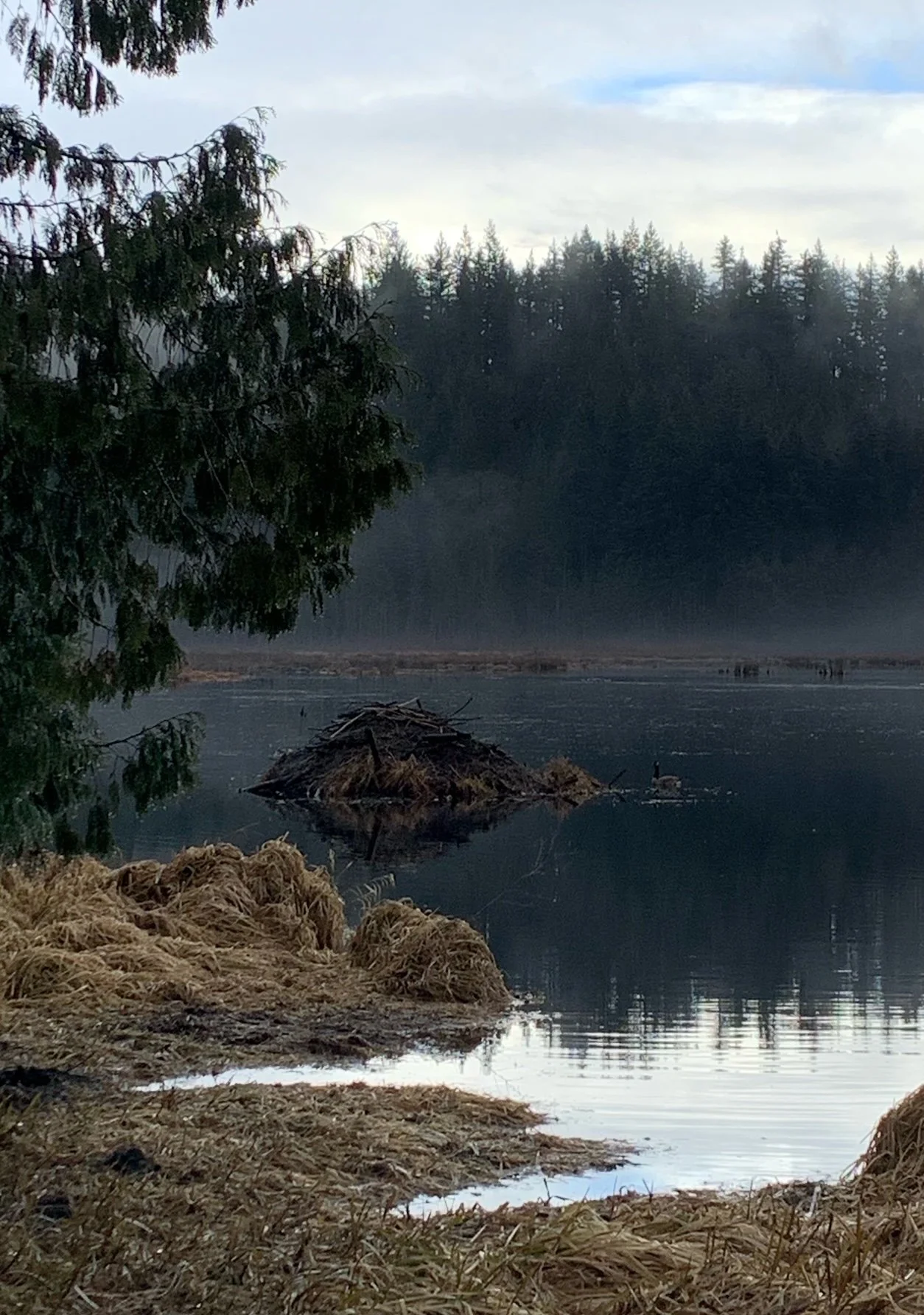 We had 11 people signed up for this hike, but due to a variety of reasons, (some transportation and weather forecast related) our numbers dwindled to two, plus two leaders. We woke up to heavy rain and seriously considered cancelling altogether. In the end we four heavily goretexed and optimistic souls had our faith rewarded. There was a break in the weather as we set off from the Quarry trailhead and we had no rain as we hiked through the marsh pathways, by beaver lodges and ducks. The trail went up through the forest to the rocky outcroppings and viewpoints. We had views over the Pitt River to the Fraser and learned a new word for the area: “polder”. From the Addington lookout we dropped down to the dike and walked a short way along the canal to a bird watching platform before making our way back to the Lower Marsh. There were washrooms and picnic tables overlooking the water which made a lovely lunch spot. It started to rain lightly as we finished eating, so we had a look around the historic Minnekhada lodge and then had only 1 km left back to the parking lot. It was a way better morning than any of us expected.