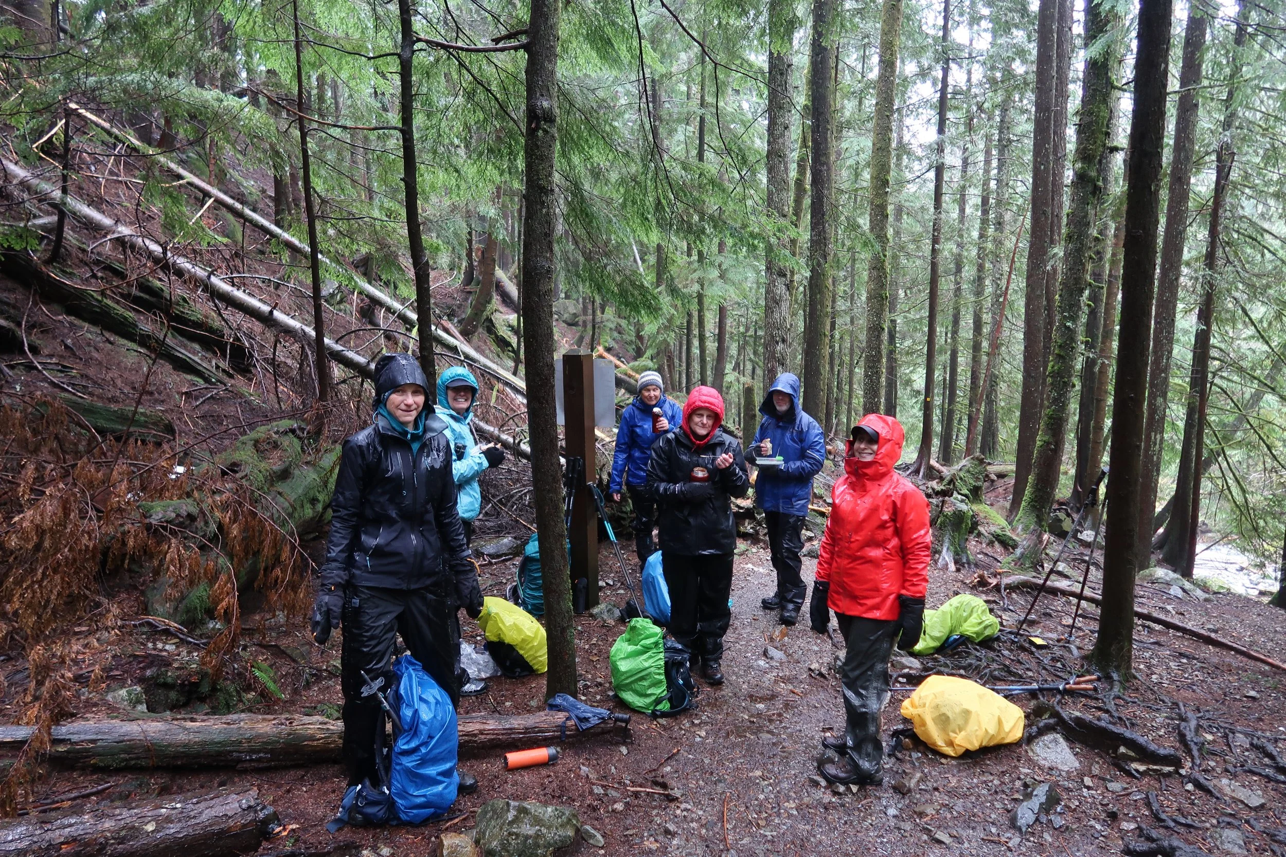 More of an exploration of the challenges of walking up a stream than a hike. Incessant rain may have dampened the ground, but not the spirits. Only seven of us braved the elements and we were, not surprisingly, almost alone on the trail. A few trail runners and heroic dog walkers, that was about it. Lunch at NorVan Falls was but a brief affair before we turned round.