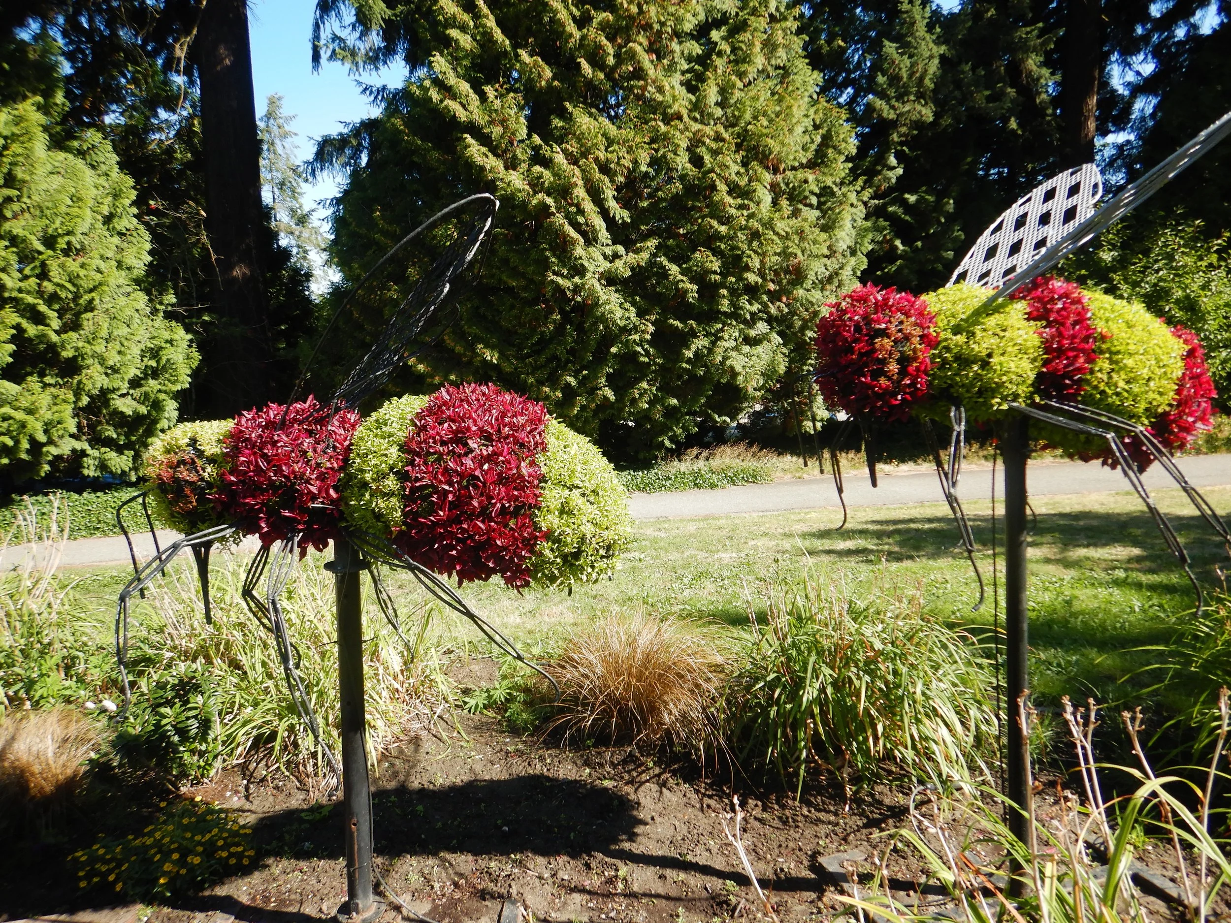 This ride was originally billed as a trip to look at orca art in Vancouver. This was following a visit to a fundraiser, including a showing of Free Willy, for the whale museum at Telegraph Cove. It turned out that there isn’t much orca art to look at, fortunately Burnaby came to the rescue with its annual eco-sculpture floral displays.