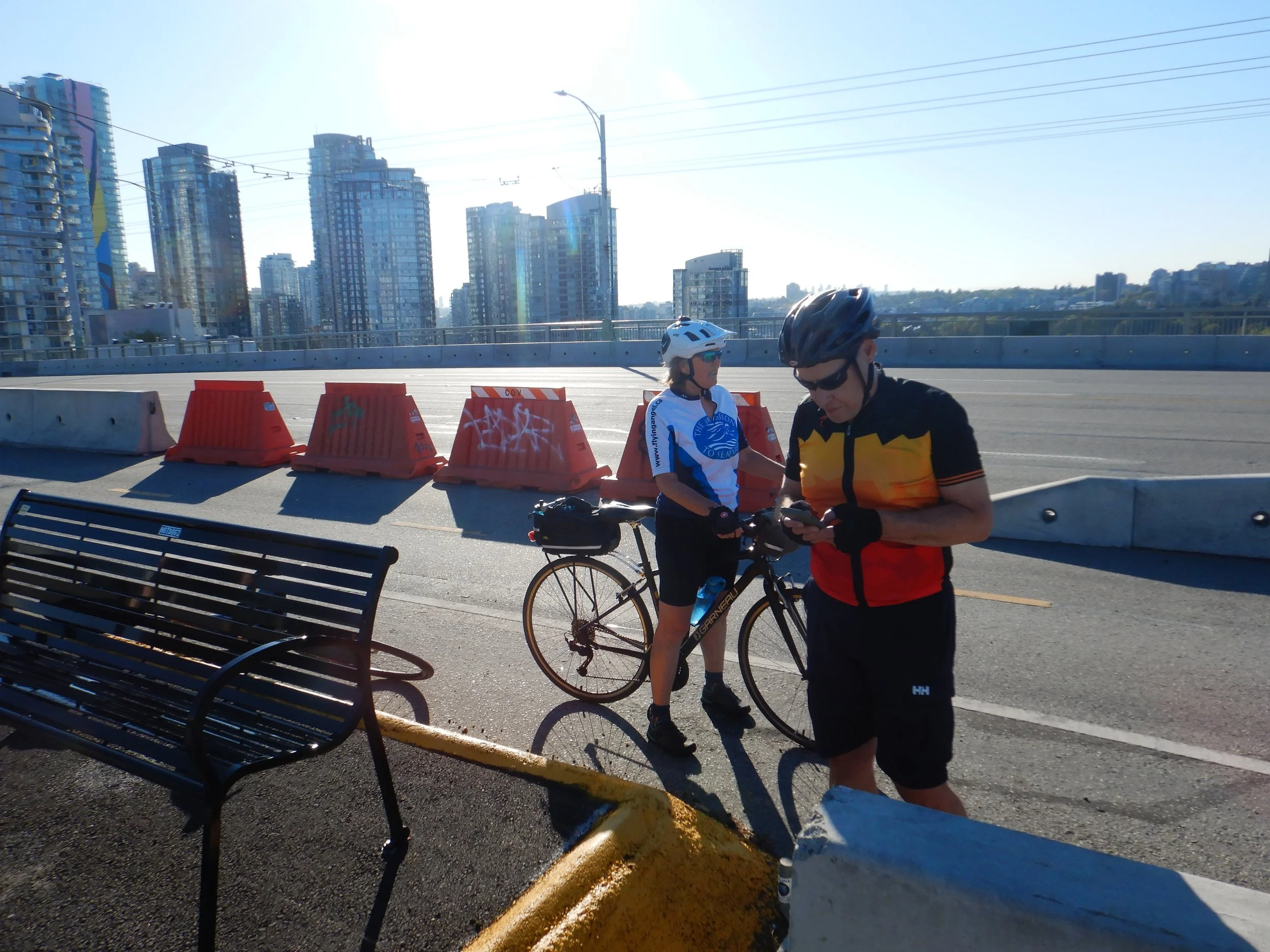 Downhill on Kerr Street is always exciting, direct to the Fraser and Romer’s Burger Bar, we fought off the temptation to call it a day there. We then backtracked due to construction and made our way through the River District, now becoming a lived in hub after many years of construction. We found a shady grove (complex musical reference there) with a picnic table and refuelled. By this stage it was clearly going to be a hot day so we decided not to go to New West to see their orca, this would have involved a steep climb out of New West and enthusiasm was limited.