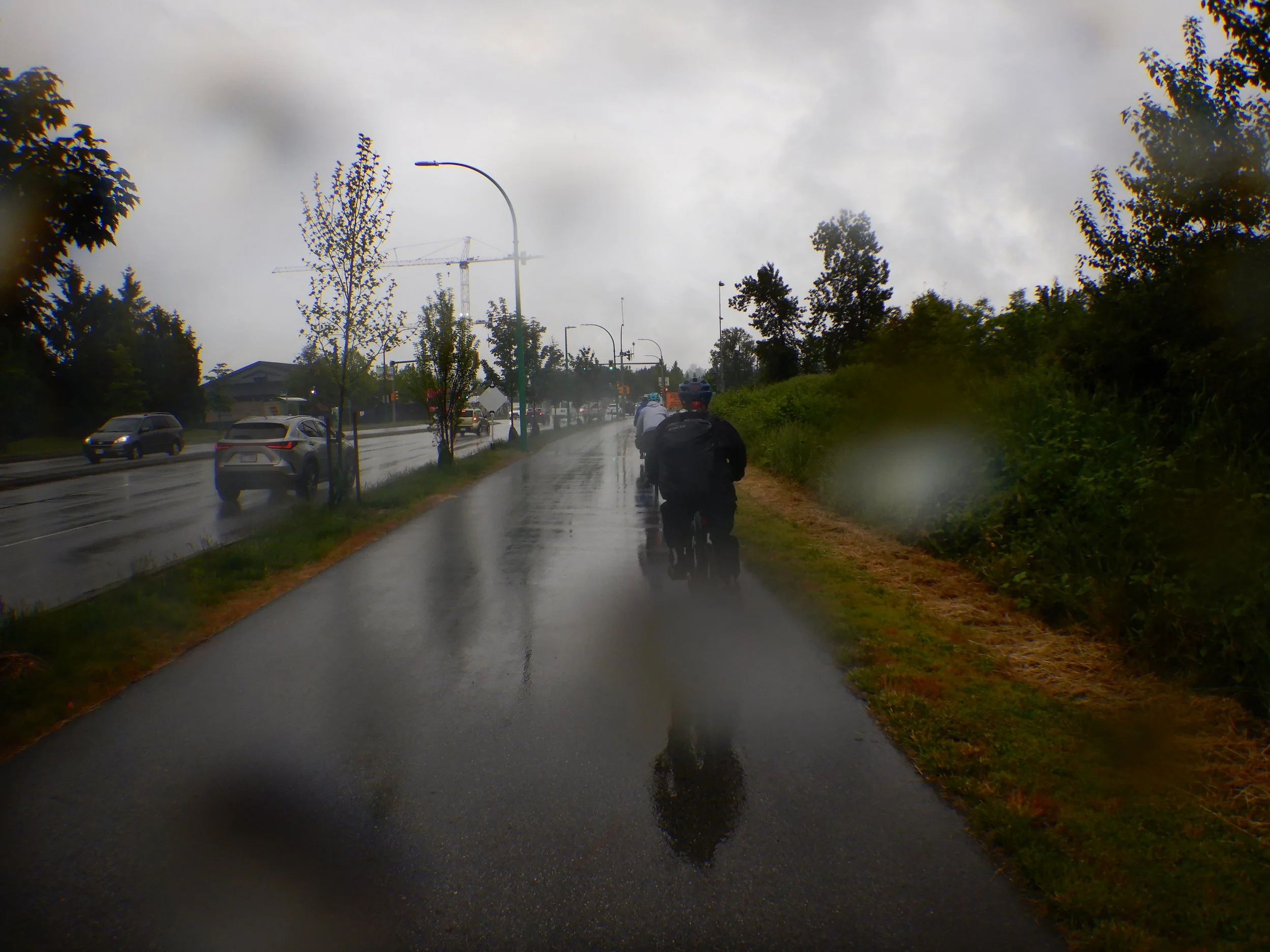 While we were in the diner the weather had deteriorated so we came up with an alternate route back downtown that didn’t involve the trip along the Fraser. Off we went southwards, crossing Still Creek and passing the Christine Sinclair Community Centre and Deer Lake before the steep ascent through Buckingham Heights. After that the navigation fell apart (I’d failed to restart it) and despite the number of times I’ve cycled through New West it’s still tricky. Anyway after a few stops and starts we picked up the BC Parkway.