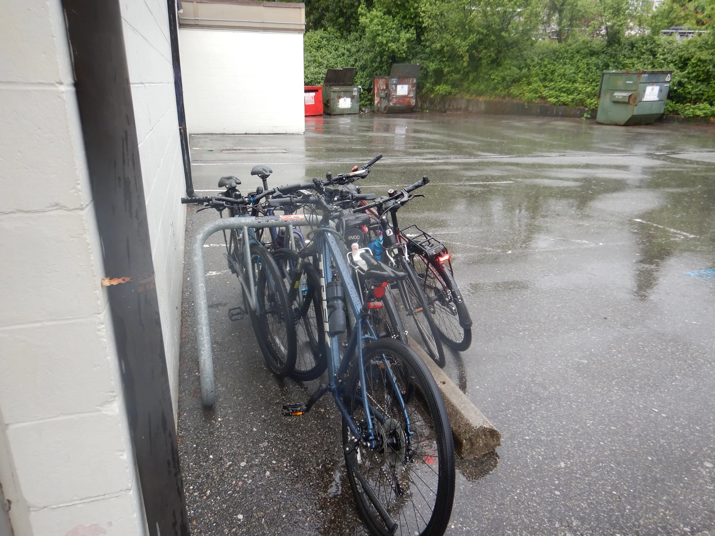 Well today was a day. The forecast was not great, rain pretty much all day but since we had breakfast booked at 0900 in the Park Crest Diner in Burnaby we were going anyway. In the end seven of the eight scheduled members turned up at Waterfront Station with wet weather gear and bikes. The eighth member let us know in plenty of time that they would not be attending, because of the weather, good job! Thankyou for that.